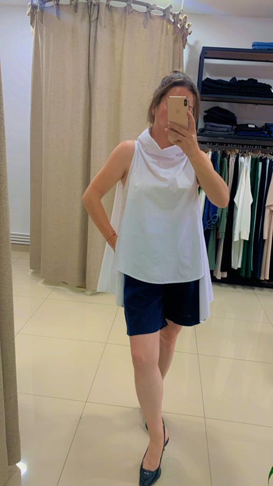 40% İndirimTasarım Kolsuz Beyaz Asimetrik Gömlek