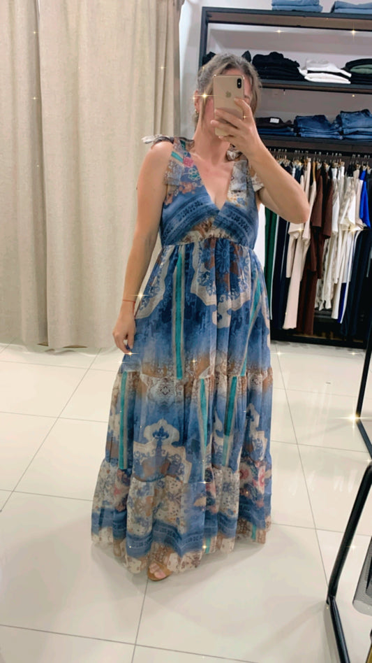 Tensel İtalyan Mavi Uzun Elbise