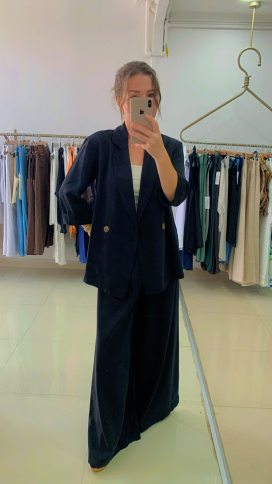 • Saten Pamuk Yandan Yırtmaçlı Ceket