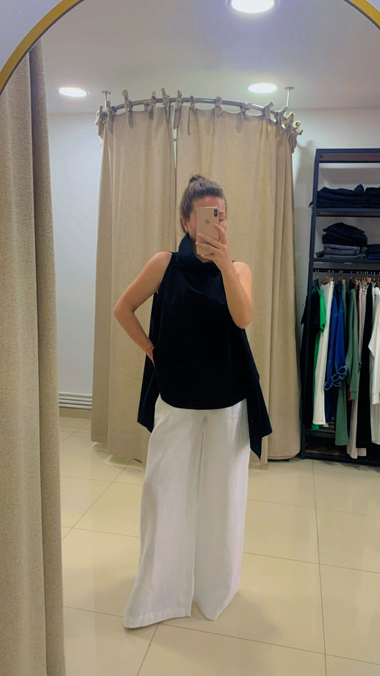 Tasarım Kolsuz Asimetrik Gömlek