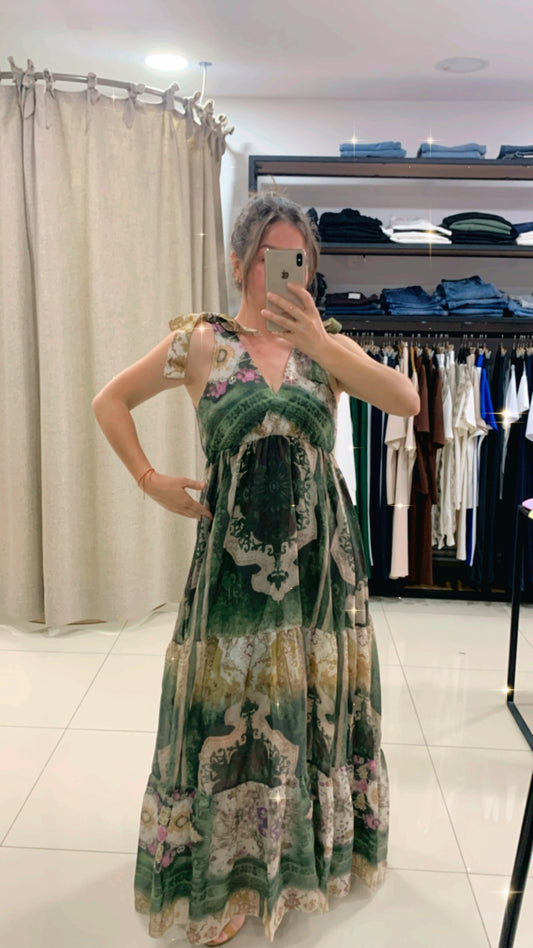 Tensel İtalyan Yeşil Uzun Elbise