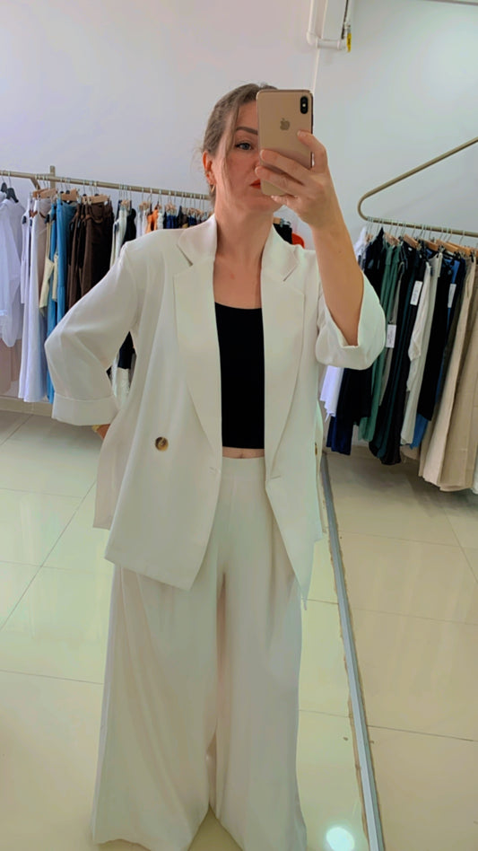 • Pamuk Saten Yandan Yırtmaçlı Ceket