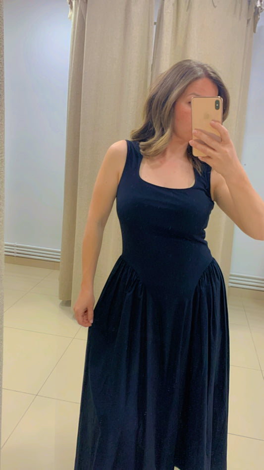 • Kare Yaka Siyah Elbise